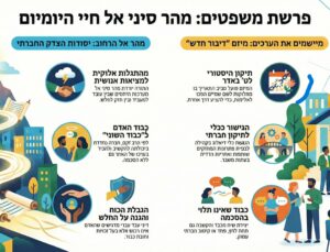 כך גם פרשת משפטים קוראת לנו לשאול לא רק איזה חוק נחקק, אלא איזו חברה אנו מבקשים להיות. חברה שבה ההתגלות אינה נשארת בהר, אלא מחלחלת אל תוך המציאות האנושית. צעד אחר צעד הופך הגישור לכלי של תיקון חברתי- כזה שמוריד את הערכים מן ההר אל הרחוב, אל מקום העבודה, אל הקהילה ואל החיים עצמם- בבניית עתיד המבוסס על כבוד, צדק, חסד וחמלה, גם כשהדרך ארוכה ומאתגרת.