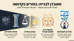 מן הבחירה האישית הזו עוברת התורה אל הבחירה הקולקטיבית. פרשת קדושים פותחת בציווי רחב ומפתיע: “קדושים תהיו”. לא ציווי ליחידים בלבד, אלא לכל החברה. הקדושה איננה מנותקת מהחיים- היא מתבטאת ביומיום: ביחס לעובדים, במשפט צדק, בהימנעות מרכילות, באחריות הדדית ובמשפט הגדול: “ואהבת לרעך כמוך”. רבי עקיבא הגדיר מצווה זו כ“כלל גדול בתורה”. כלומר, קדושה איננה רעיון מופשט אלא צורת חיים חברתית: איך אנו בונים חברה, איך אנו מתייחסים זה לזה, ואיזה עולם אנו יוצרים יחד.